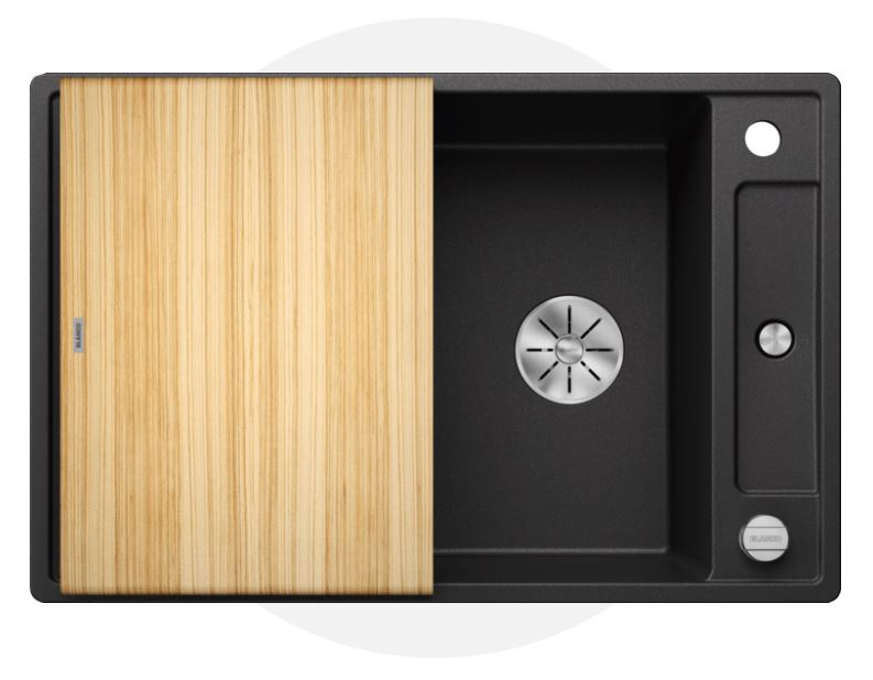 Blanco Axia III 45 S Zestaw Zlewozmywak granitowy jednokomorowy 78x47 cm antracyt + deska kuchenna drewniana 523173