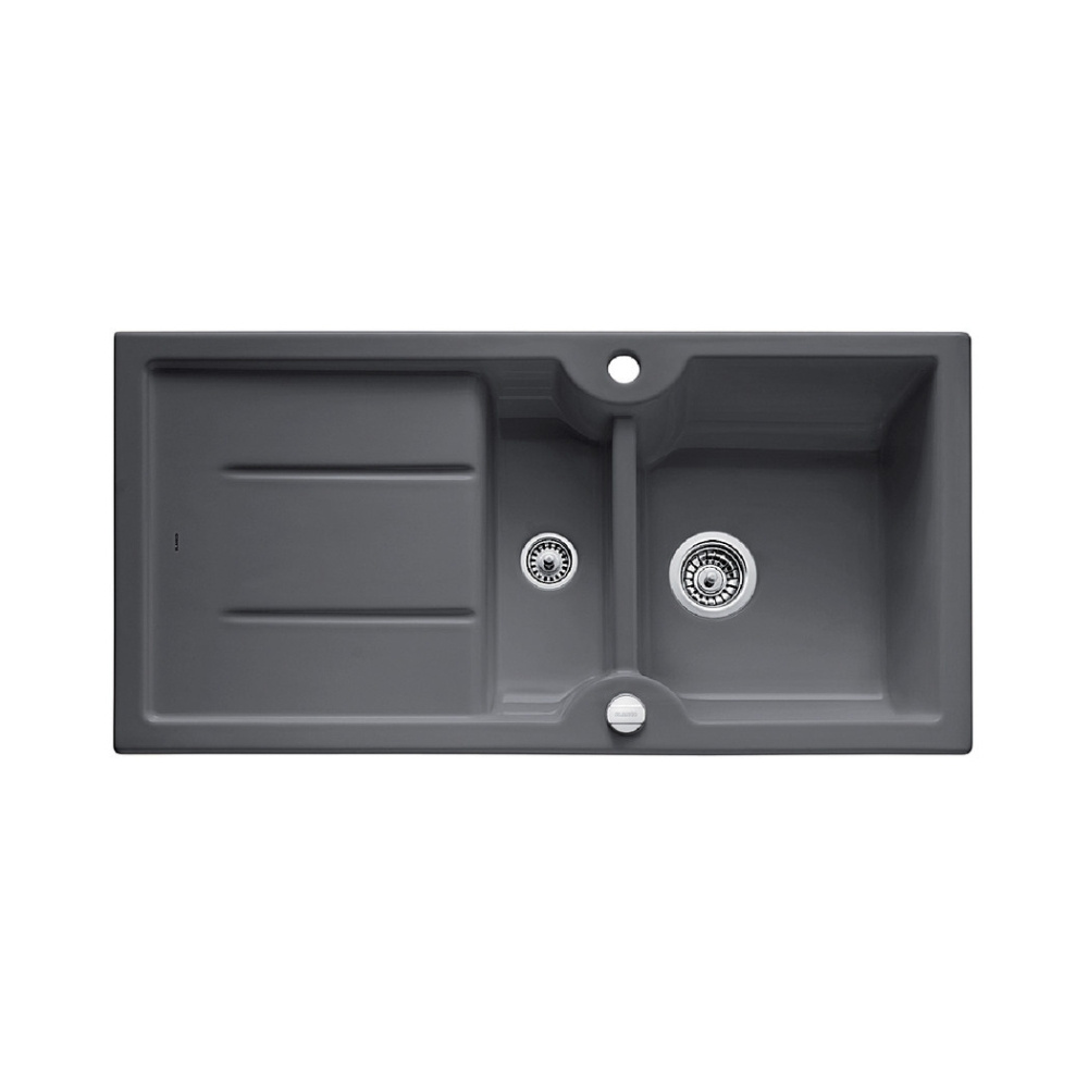 Blanco Idessa 6 S Zlewozmywak ceramiczny półtorakomorowy 100x50 cm z ociekaczem, z korkiem automatycznym, bazaltowy 516984