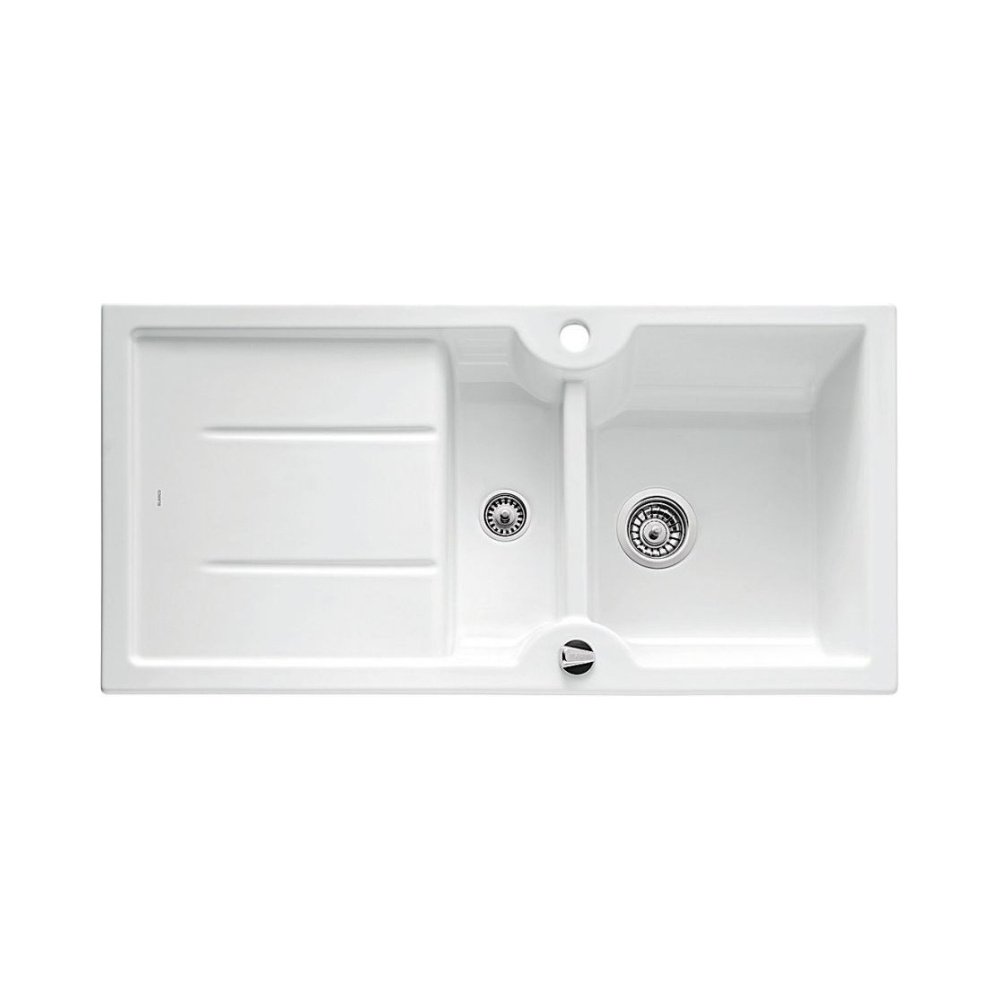 Blanco Idessa 6 S Zlewozmywak ceramiczny półtorakomorowy 100x50 cm z ociekaczem, z korkiem automatycznym, biały 516001