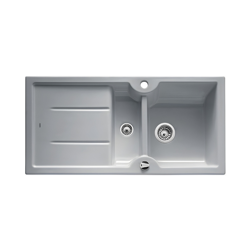 Blanco Idessa 6 S Zlewozmywak ceramiczny półtorakomorowy 100x50 cm z ociekaczem, z korkiem automatycznym, szarość aluminium 516005