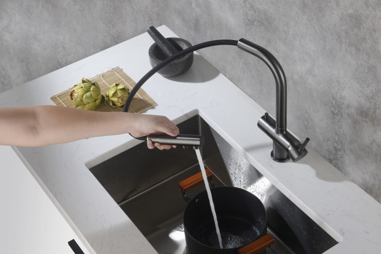 Blue Water Apala Bateria kuchenna z wyciąganą wylewką do filtra wody grafit 5901730617801