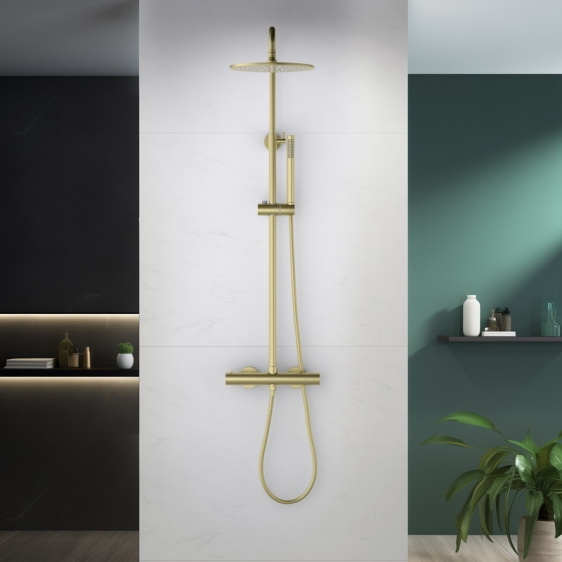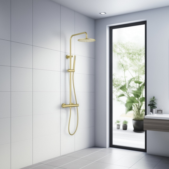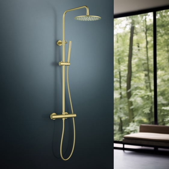 Opis produktu Blue Water Boston Zestaw prysznicowy termostatyczny natynkowy z deszczownicą złoto szampańskie 5901730617566