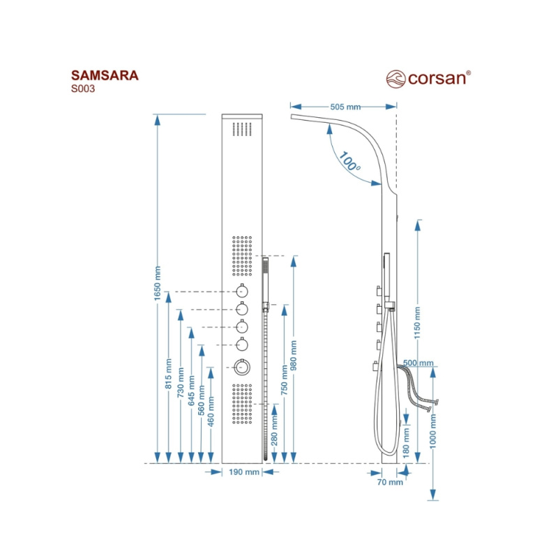 Corsan Samsara Panel prysznicowy z deszczownicą stal szczotkowana S-003/S003MSL