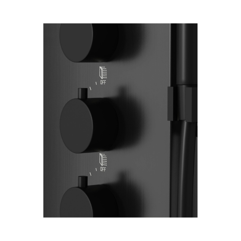Corsan Samsara Panel prysznicowy z deszczownicą termostatyczny z wylewką czarny szczotkowany S003TBLW