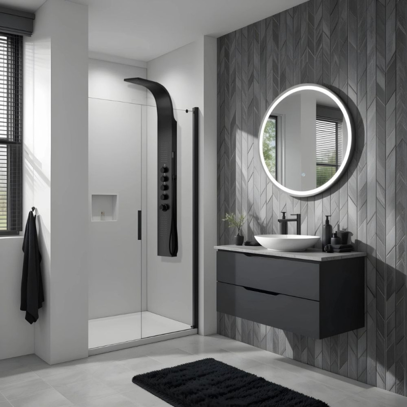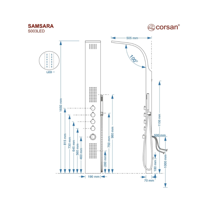 Corsan Samsara Panel prysznicowy z deszczownicą LED czarny szczotkowany S003MBLLED
