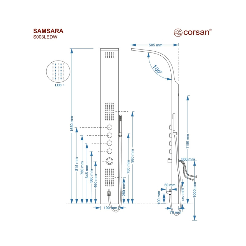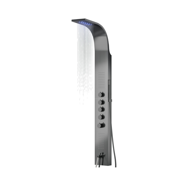 Corsan Samsara Panel prysznicowy z deszczownicą termostatyczny z wylewką LED grafit szczotkowany S003TGMLEDW