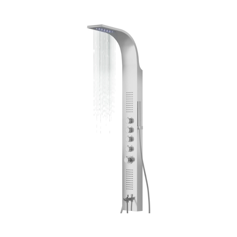 Corsan Samsara Panel prysznicowy z deszczownicą z wylewką LED stal szczotkowana S003MSLLEDW