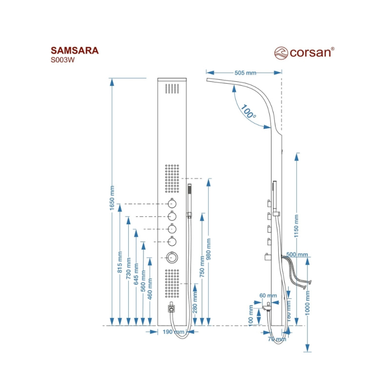 Corsan Samsara Panel prysznicowy z deszczownicą z wylewką grafit GunMetal S003MGMW