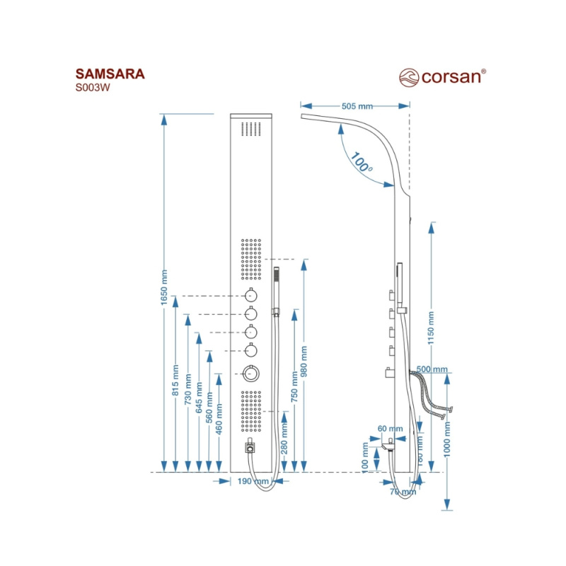 Corsan Samsara Panel prysznicowy z deszczownicą z wylewką czarny szczotkowany S003MBLW