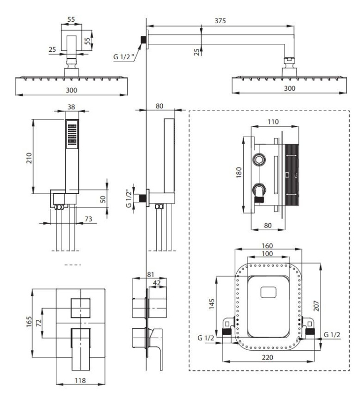 Deante Anemon Zestaw prysznicowy podtynkowy z deszczownicą chrom BXYZ0BZM