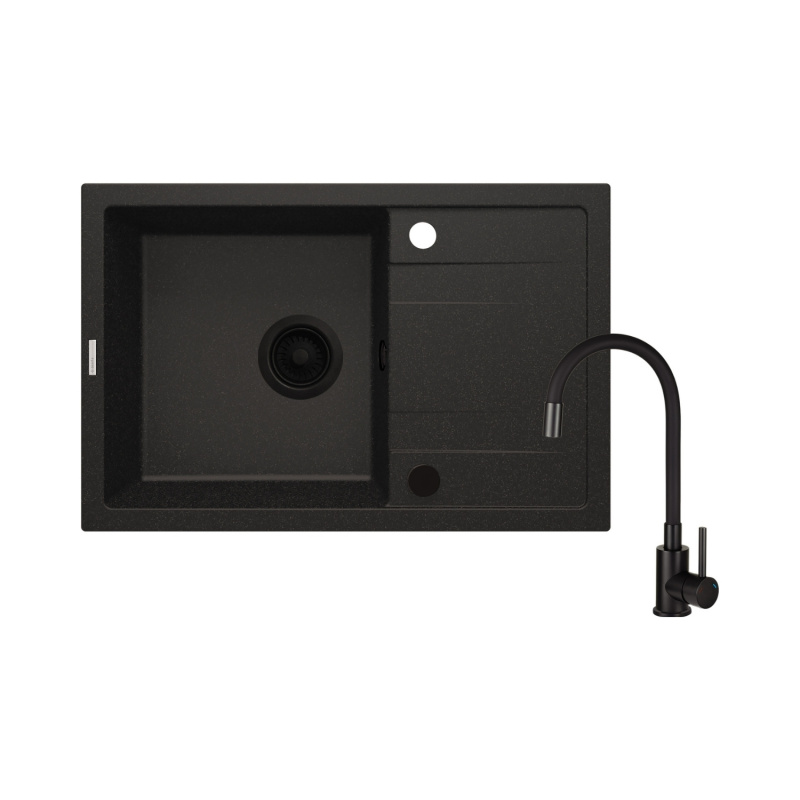 Deante Corio Zestaw Zlewozmywak granitowy jednokomorowy 67x44 cm + bateria kuchenna grafit metalik ZRCPG113
