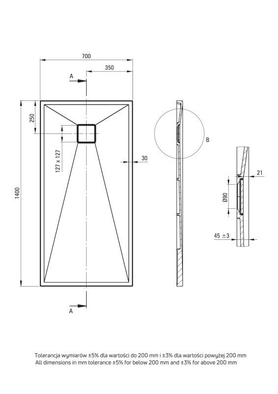 Deante Correo Brodzik prostokątny 140x70 cm alabaster KQR_A77B