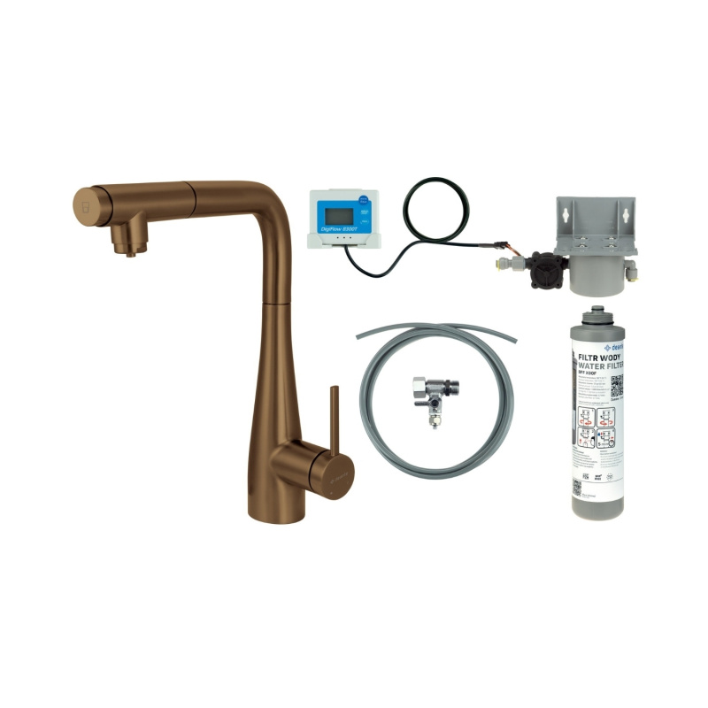 Deante Eridan Bateria kuchenna z wyciąganą wylewką z filtrem brąz szczotkowany BREFC75M