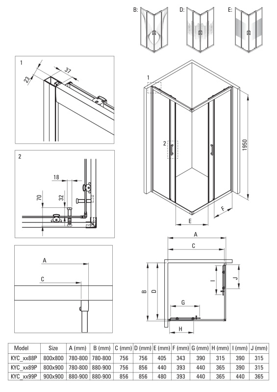Deante Funkia Evo Kabina kwadratowa 90x90x195 cm drzwi przesuwne profile titanium/szkło transparentne KYC_D099P