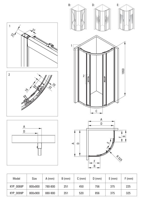 Deante Funkia Evo Kabina półokrągła 90x90x195 cm drzwi przesuwne KYP_0099P