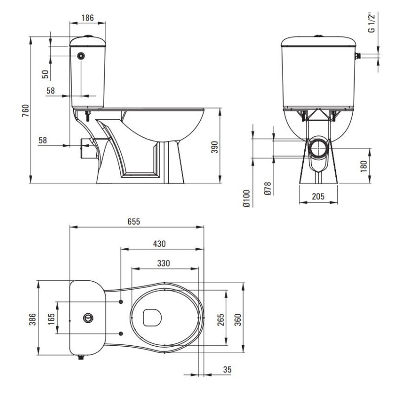 Deante Funkia Zestaw Toaleta WC stojąca kompakt odpływ poziomy + spłuczka + deska wolnoopadająca biały CDFD6LPS