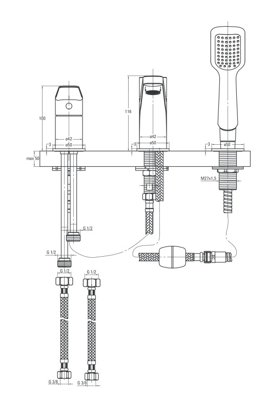 Deante Jasmin Nero Bateria nawannowa 3 otworowa czarna BGJN13M