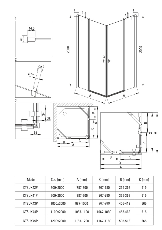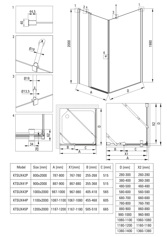 Deante Kerria Plus Drzwi uchylne 110x200 cm KTSU044P
