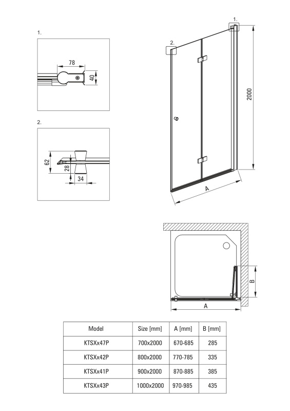 Deante Kerria Plus Kabina kwadratowa 80x80x200 cm drzwi składane KKN0X08X08