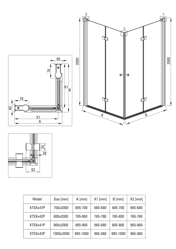 Deante Kerria Plus Kabina kwadratowa 80x80x200 cm drzwi składane profile czarny mat szkło przejrzyste KKNNX08X08