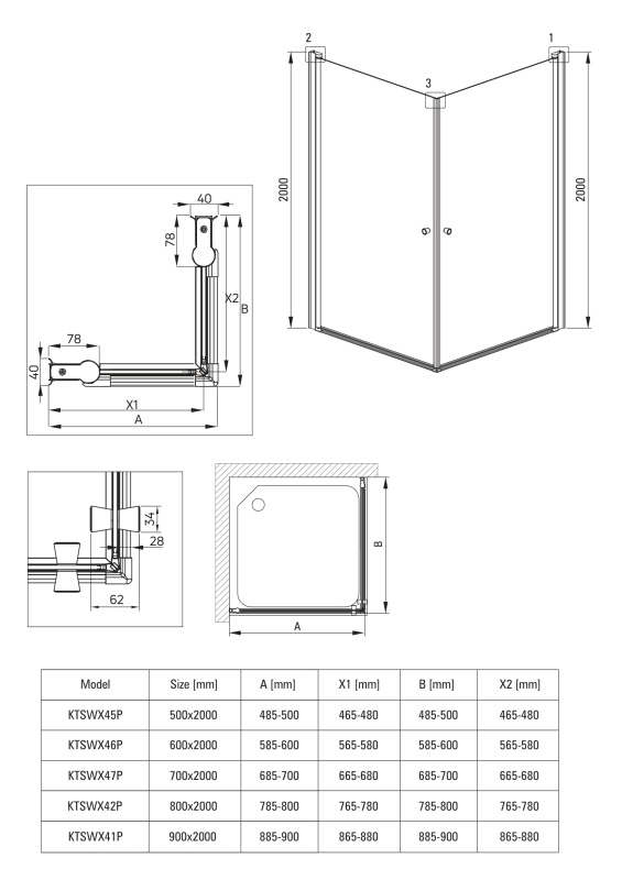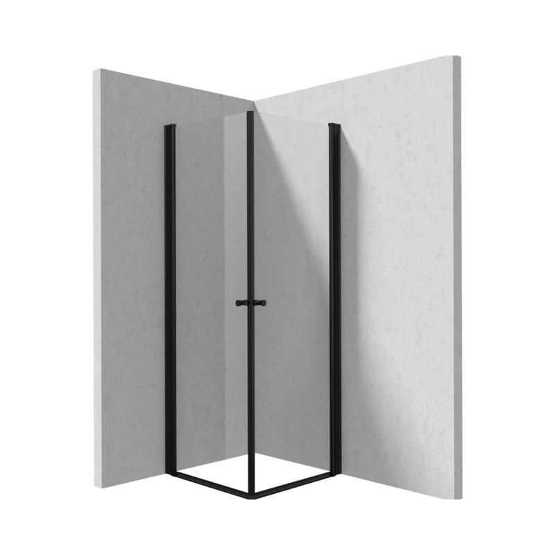 Deante Kerria Plus Kabina kwadratowa 80x80x200 cm drzwi wahadłowe profile czarny mat szkło przejrzyste KKNNW08W08