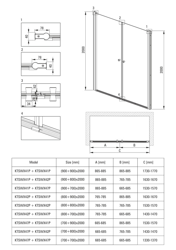 Deante Kerria Plus Kabina kwadratowa 90x90x200 cm drzwi wahadłowe KKN0W09W09