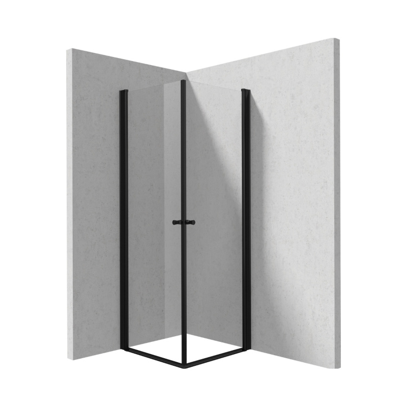 Deante Kerria Plus Kabina kwadratowa 90x90x200 cm drzwi wahadłowe profile czarny mat szkło przejrzyste KKNNW09W09