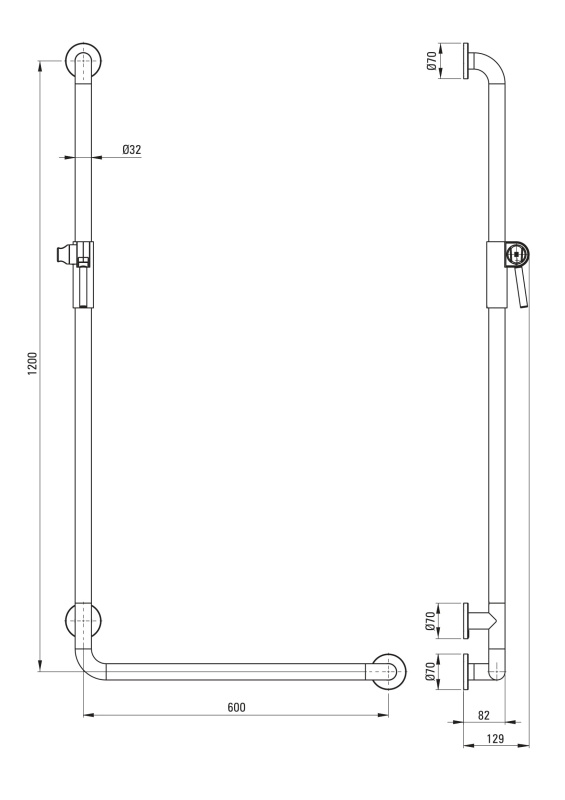Deante Lehnen Uchwyt ścienny 67x127 cm kątowy lewy stal polerowana NIL_0L2D