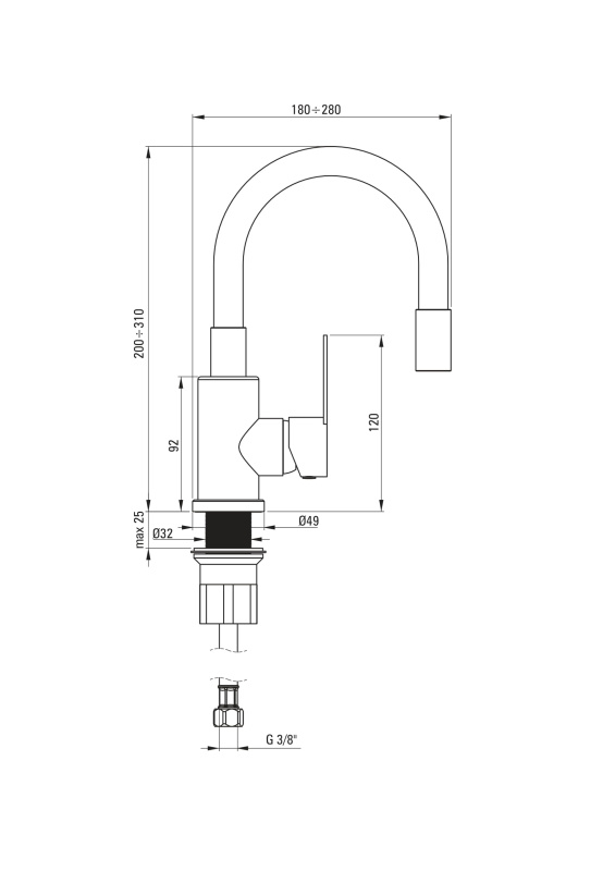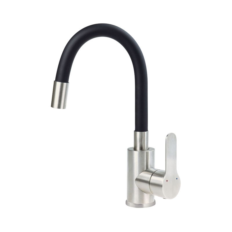 Deante Neo Lupo Bateria umywalkowa z giętą wylewką czarny mat/stal szczotkowana BLU_B240