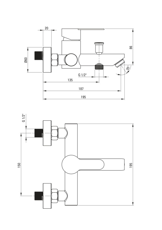 Deante Neo Lupo Bateria wannowa natynkowa stal szczotkowana BLU_F10N