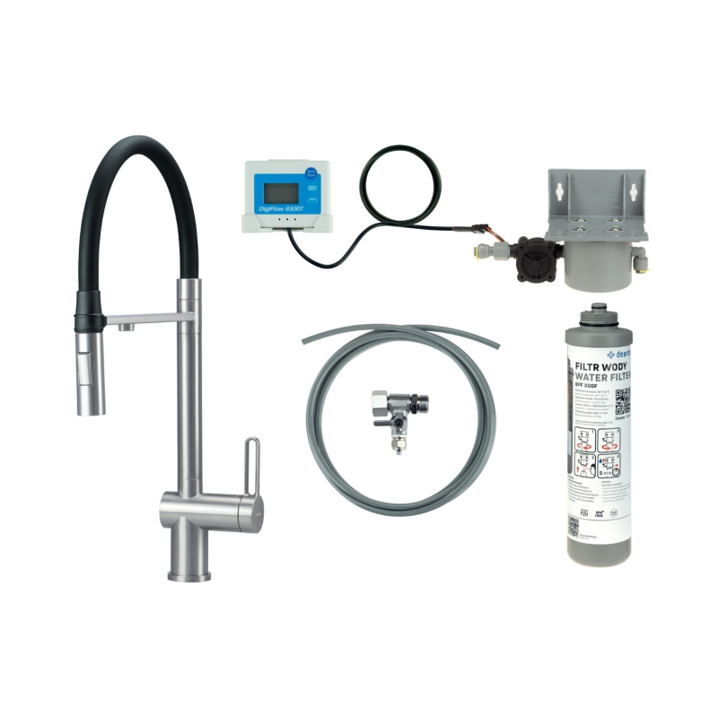 Deante Magnetic Bateria kuchenna z elastyczną wylewką z filtrem stal szczotkowana BRMFF75M