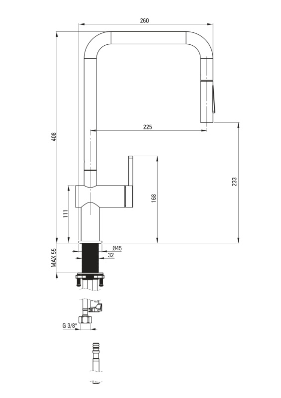 Deante Momi Bateria kuchenna z wyciąganą wylewką biały mat BKM_A73N