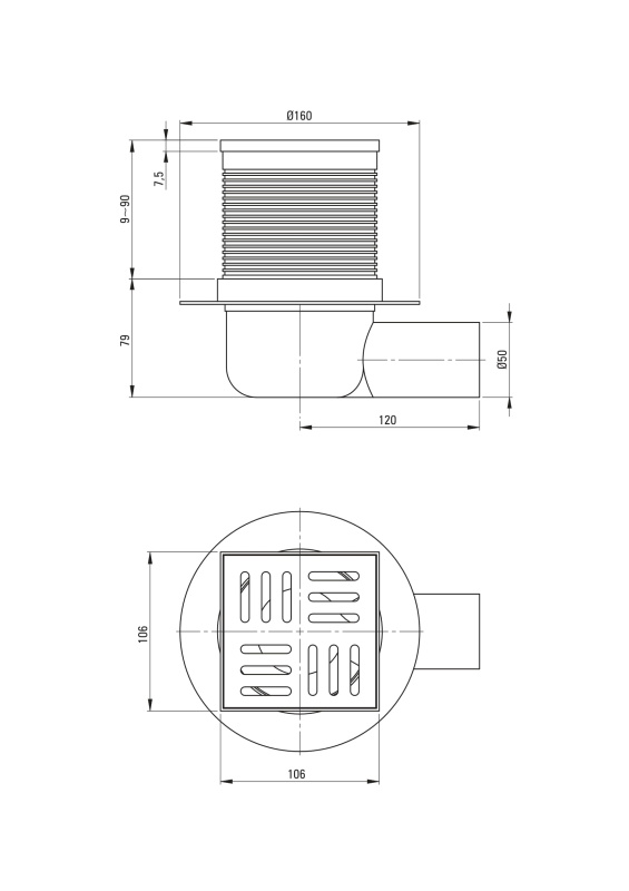 Deante Odpływ punktowy 10,5x10,5 cm kratka czarny mat KOS_N01C