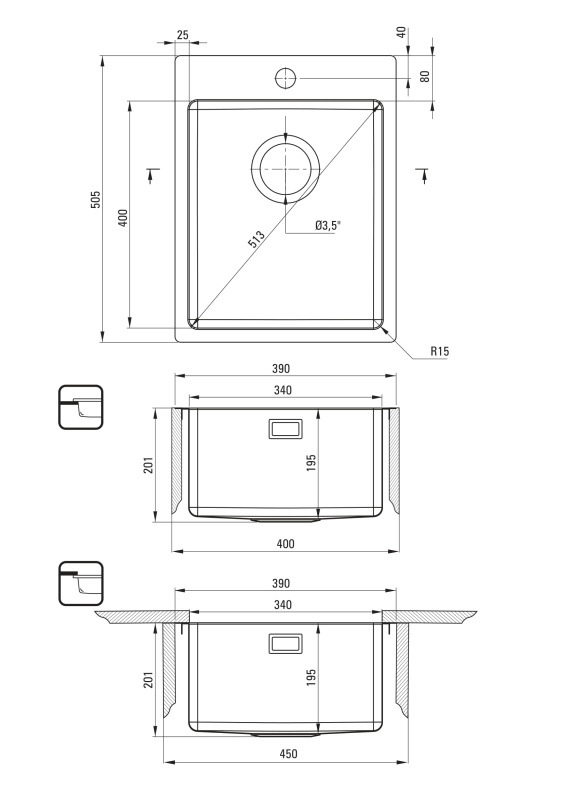 Deante Olfato Precious Zlewozmywak stalowy jednokomorowy 39x50,5 cm titanium ZPO_D10E