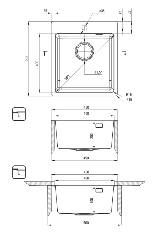 Deante Olfato Precious Zlewozmywak stalowy jednokomorowy 45x50,5 cm brąz szczotkowany ZPO_C10A