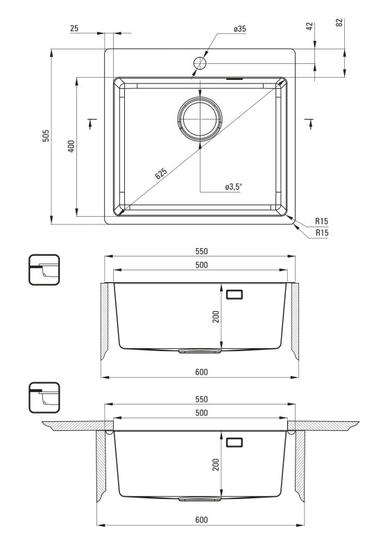Deante Olfato Precious Zlewozmywak stalowy jednokomorowy 55x50,5 cm brąz szczotkowany ZPO_C10B