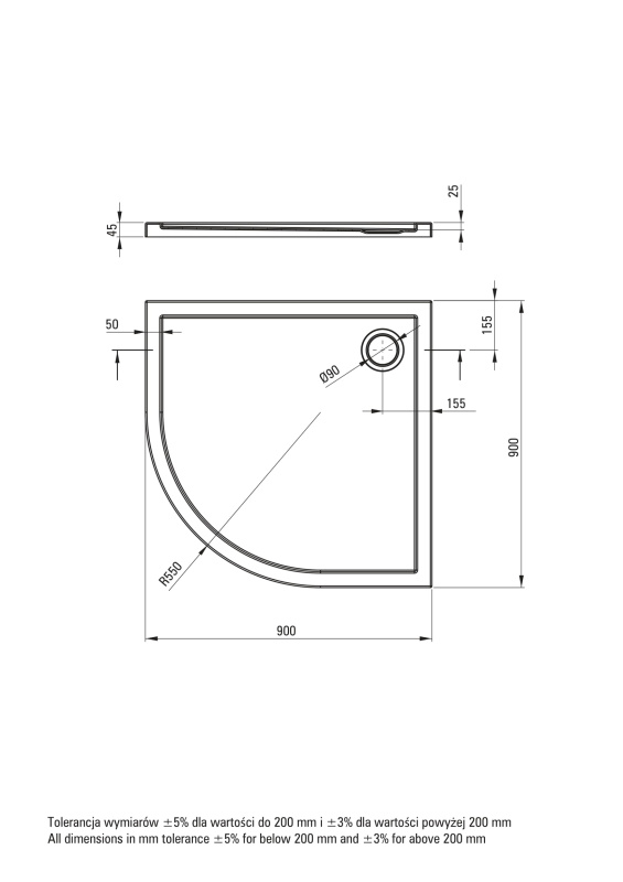 Deante Prizma Brodzik półokrągły 90x90 cm biały KTJ_093B