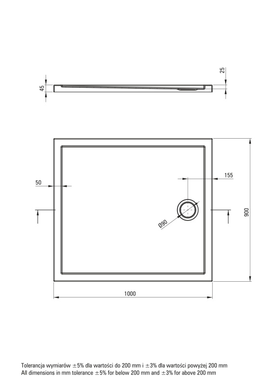 Deante Prizma Brodzik prostokątny 100x90 cm biały KTJ_085B