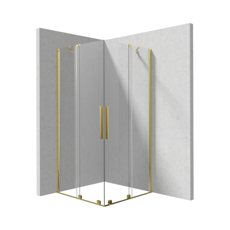 Deante Prizma Kabina kwadratowa 90x90x195 cm drzwi przesuwne profile złote szkło przejrzyste KPNZP09P09