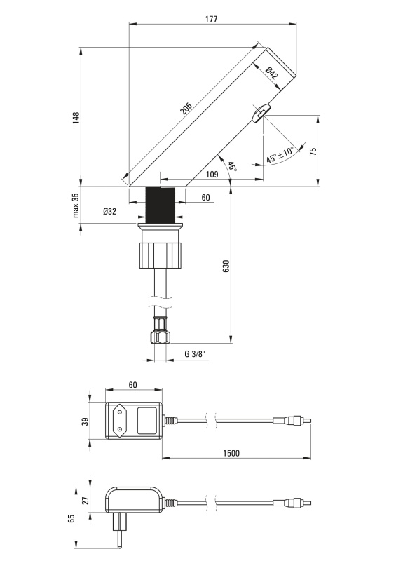 Deante Sense Bateria umywalkowa bezdotykowa bez regulacji temperatury 230/6V stal polerowana BQR_P28V
