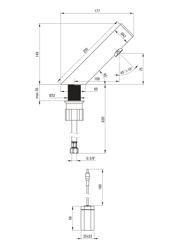 Deante Sense Bateria umywalkowa bezdotykowa bez regulacji temperatury 4xAA stal polerowana BQR_P28R