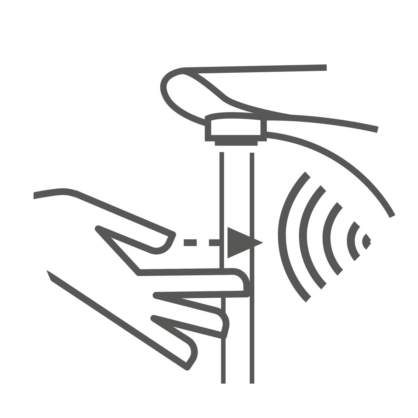 Czujnik został umiejscowiony bezpośrednio przy aeratorze, dzięki czemu nie jest narażony na kontakt z wodą spływającą z wilgotnych dłoni. To rozwiązanie zapewnia długą żywotność urządzenia oraz zachowanie estetyki armatury.