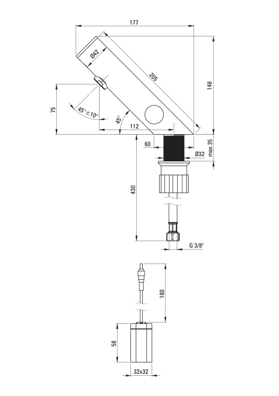 - Zasięg wylewki: 11,2 cm