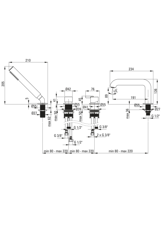 Deante Silia Bateria nawannowa 4 otworowa brąz szczotkowany BQS_C14M