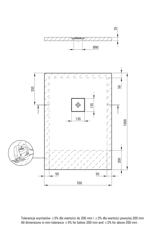 Deante Silia Brodzik prostokątny 70x100 cm biały KSKA00710B