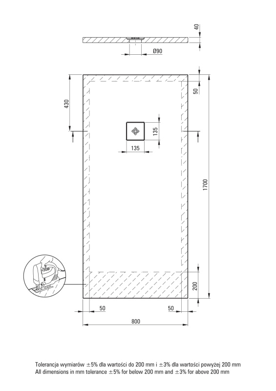 Deante Silia Brodzik prostokątny 80x170 cm biały KSKA00817B