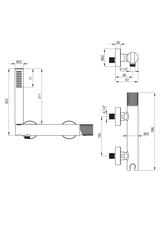 Deante Silia Hexa Bateria prysznicowa natynkowa stal szczotkowana BHS_F41M