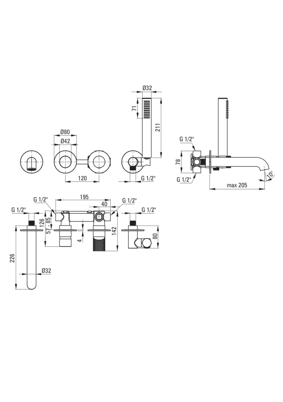Deante Silia Hexa Bateria wannowa podtynkowa stal szczotkowana BHS_F18P