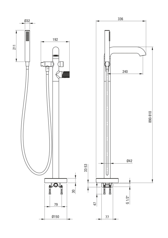 Deante Silia Hexa Bateria wannowa wolnostojąca stal szczotkowana BHS_F17M
