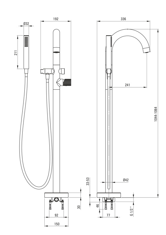 Deante Silia Hexa Bateria wannowa wolnostojąca stal szczotkowana BHS_F17N